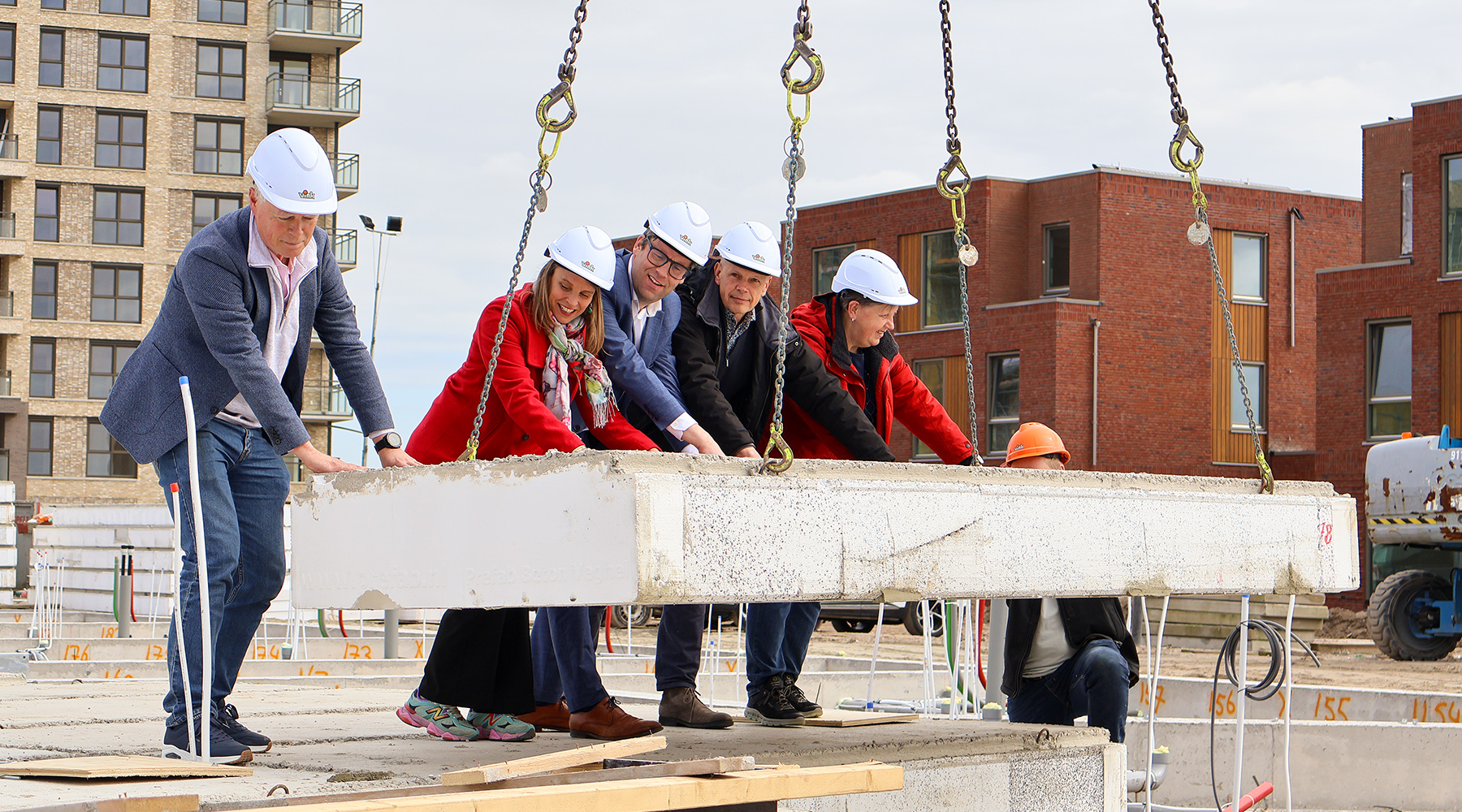 Op woensdag 1 april vierden de stichting Knarrenhof, Mozaïek Wonen, gemeente Gouda en Bouwbedrijf Frans Vink samen met betrokken partijen en toekomstige bewoners de start bouw van de woningen in het project Knarrenhof.
