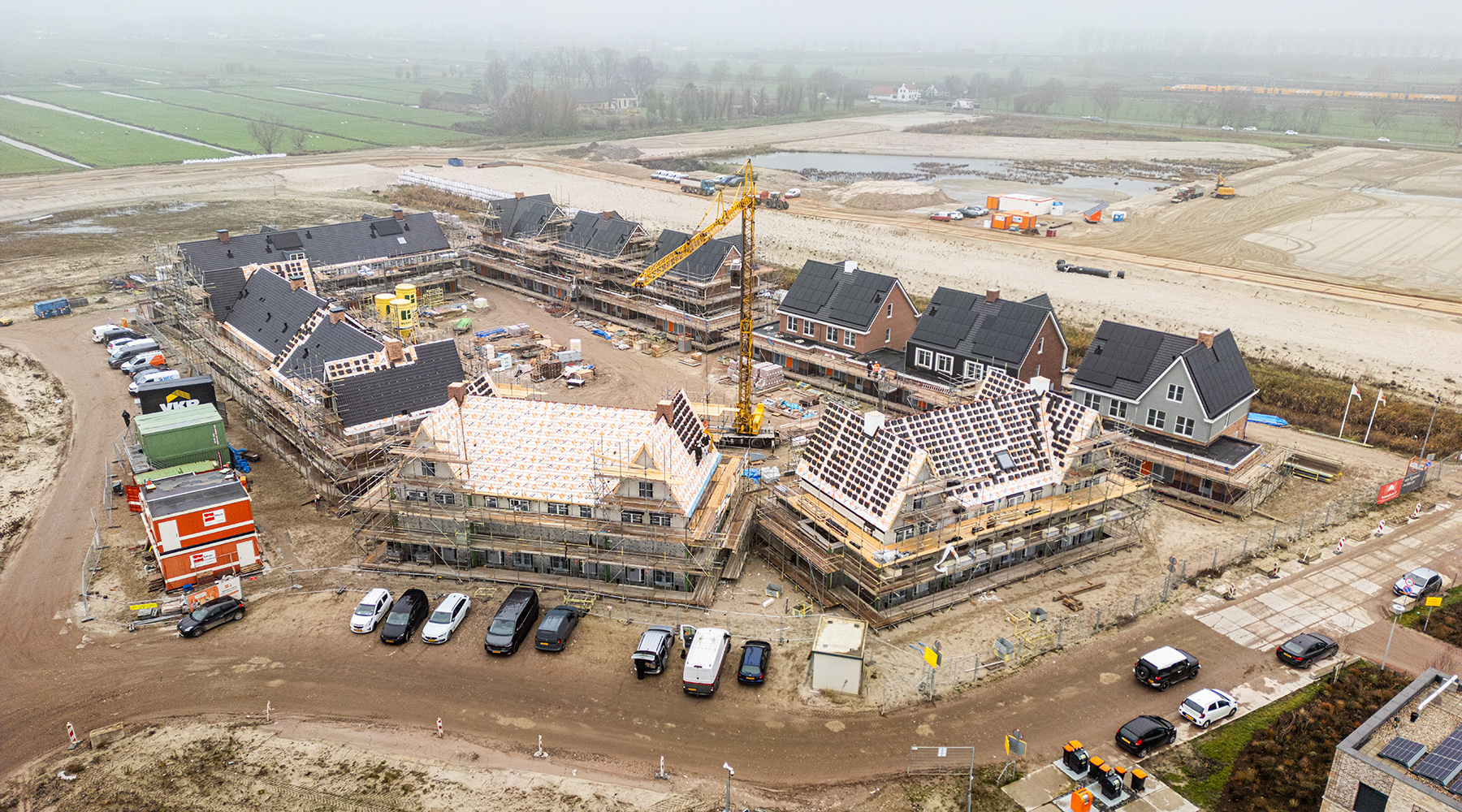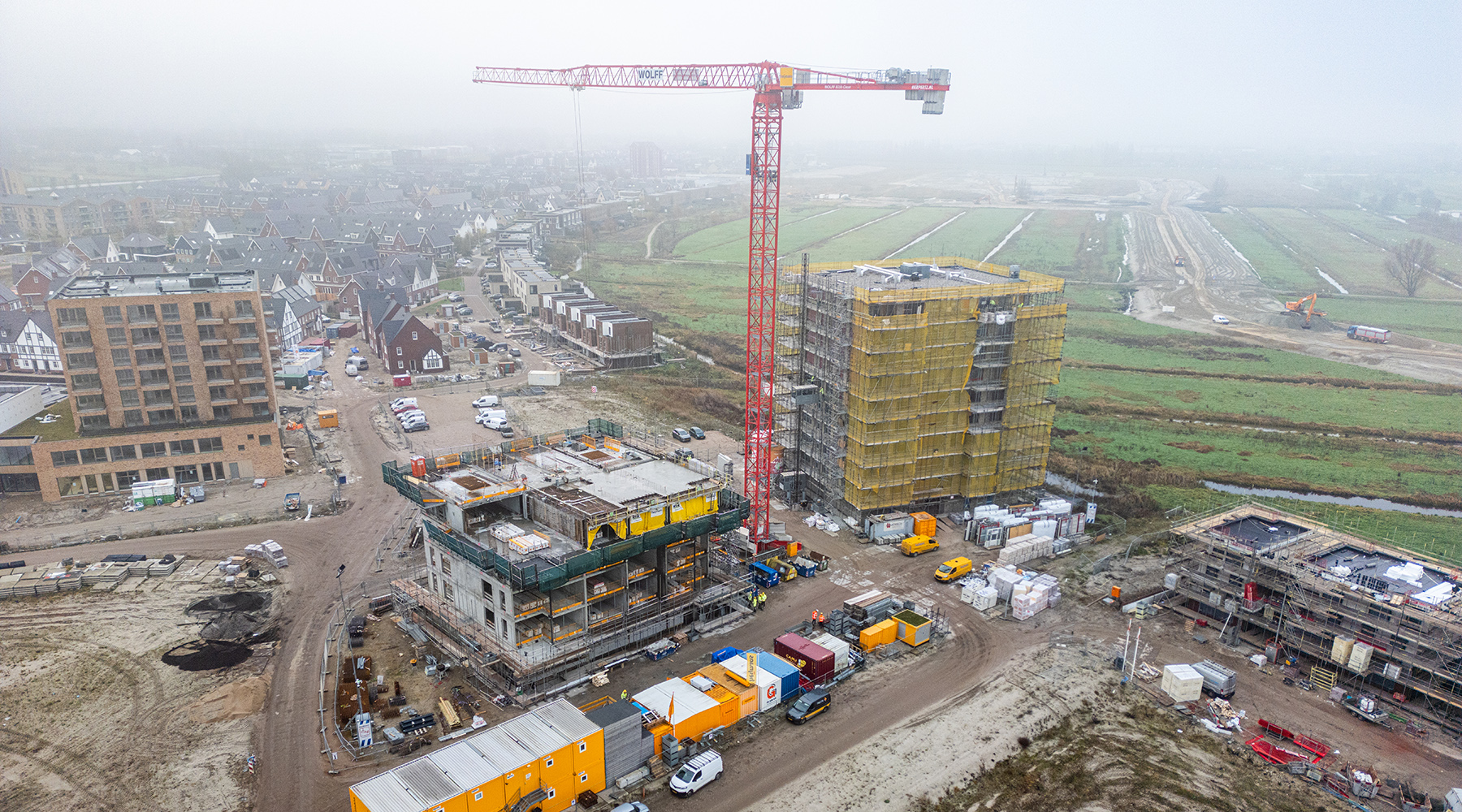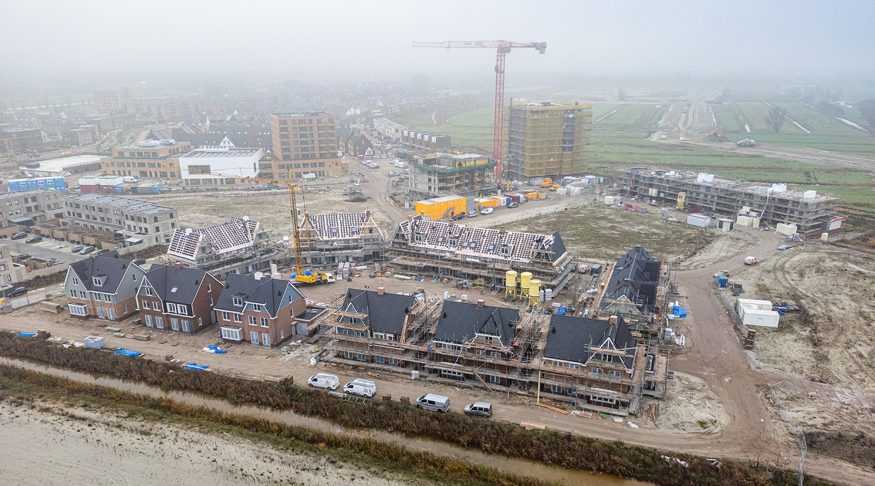 In het derde deelgebied van Westergouwe wordt volop gebouwd. Onze fotograaf heeft op een mistige middag in december en rondje langs de bouwplaatsen gemaakt en de stand van de bouw van de projecten vastgelegd. Kijk je mee naar de projecten in aanbouw in dit deelgebied?